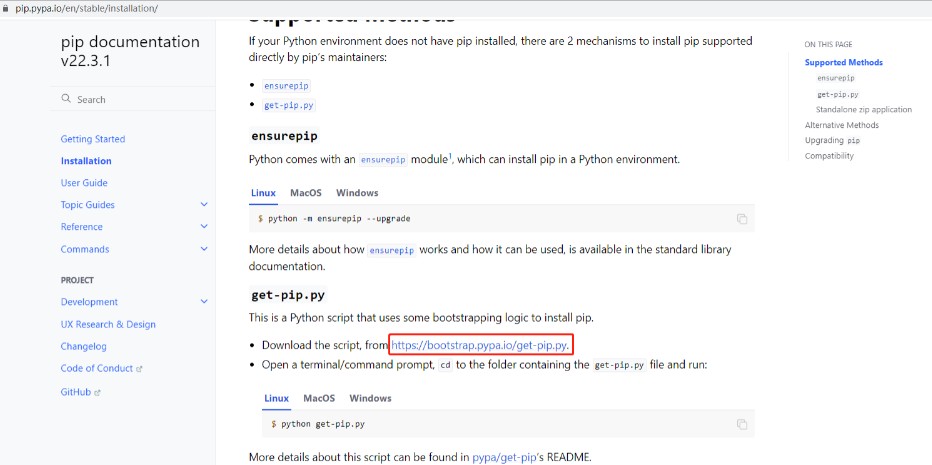 https://pip.pypa.io/en/stable/installation/