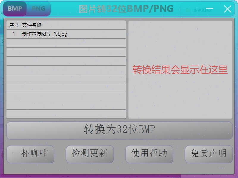 图片转32位BMP/PNG工具(小巧绿色,界面酷炫)